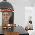 Några av de 59 ljudisolerade rummen på det här boendet, som vetter mot uteplatsen, har matplats och uteplats. De är inredda med lyxig design.